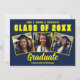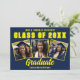 Esta moderna tarjeta de invitación de personalizado de graduación de color azul marino y amarillo muestra las fotos de tu escuela secundaria o universidad para la clase de 2025. Personalizar con tu año de graduación bajo el audaz guión manuscrito y el gorro para una gran invitación de graduados personalizada.