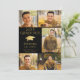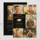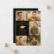 Anuncie el logro de su graduado de escuela secundaria o universidad con este elegante anuncio de foto en negro y dorado que presenta 6 fotos (5 en la parte frontal y 1 en la parte posterior), un elegante gorro de graduación o birrete de lámina metálica dorada falsa, el título GRADUADO DEL AÑO con el nombre de su graduado y la escuela en dorado sobre un fondo negro editable que puede cambiar a un color de la escuela o un color que coordine con sus fotos. La parte trasera está diseñada para incluir información sobre los logros de sus graduados, actividades y planes futuros según lo desee. ASISTENCIA: Para obtener ayuda con la modificación del diseño / personalización, cambio de color, transferencia del diseño a otro producto o si desea elementos coordinados, comuníquese con el diseñador ANTES DE REALIZAR EL PEDIDO a través de Zazzle Chat o makeitaboutyoustore@gmail.com