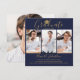 Este elegante y chic anuncio de graduación puede ser personalizado con letras doradas sobre un fondo azul marino con 4 fotos especiales de su graduado. Diseñado por Thisisnotme©