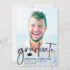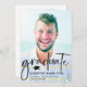 La elegante invitación de graduación 2024 presenta dos fotos de la universidad o de un graduado de secundaria. Tarjeta de Invitación de graduación con letra manuscrita, foto de retrato de sangre completa en la parte delantera con nombre y detalles de graduación. La parte trasera tiene una segunda foto con detalles adicionales. Haga clic en el botón de edición para personalizar de este diseño.