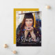 Esta simple y clásica invitación de graduación presenta una gran foto vertical y la palabra "graduado" en escritura. El respaldo de la coordinación se puede personalizar con la elección de un color escolar o favorito (haga clic en el botón "personalizar", seleccione "atrás" y luego "seleccione un color de fondo").
