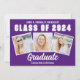Esta tarjeta de anuncio de graduado personalizada con collage de fotos de retratos de último año con letras de equipo para la promoción de 2025 debajo del nombre de tu universidad o escuela secundaria es muy trendy. Personaliza con tus 3 fotografías de graduación favoritas y personaliza la parte trasera con los detalles de la ceremonia de graduación.