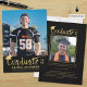Moderna invitación de graduación con un título GRADUATE de pincel con letras a mano acentuado con una tapa de graduación de Relieve metalizado de oro metálico falso y año de clase con 2 fotos (una en cada lado) en su elección de color de fondo (mostrado en negro). La parte trasera ofrece un campo de texto opcional para obtener información sobre su graduado (logros y/o planes futuros). ASISTENCIA: Para obtener ayuda con la modificación o personalización del diseño, el cambio de color, la transferencia del diseño a otro producto o si desea coordinar elementos, póngase en contacto con el diseñador ANTES DE PEDIDOS a través de la pestaña MENSAJE de charla de Zazzle o envíe un correo electrónico a makeitaboutyoustore@gmail.com.