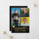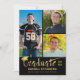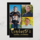 Moderna invitación de graduación con un título GRADUATE con letras a mano con un acento dorado con una tapa de graduación de Relieve metalizado de oro metálico y un año de clase con un total de 4 fotos (un collage de fotos de 3 en la parte delantera y 1 en la parte posterior) en tu elección de color de fondo (mostrado en negro). La parte trasera ofrece un campo de texto opcional para obtener información sobre su graduado (logros y/o planes futuros). ASISTENCIA: Para obtener ayuda con la modificación o personalización del diseño, el cambio de color, la transferencia del diseño a otro producto o si desea coordinar elementos, póngase en contacto con el diseñador ANTES DE PEDIDOS a través de la pestaña MENSAJE de charla de Zazzle o envíe un correo electrónico a makeitaboutyoustore@gmail.com.