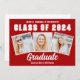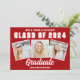 Esta moderna tarjeta de invitación de para el collage de fotos de adultos mayores de personalizado rojo y blanco incluye letras de varsity blancas para la Clase de 2025 bajo el nombre de su universidad o escuela secundaria. Personalizar con tus 3 fotografías de graduación favoritas y personaliza la parte posterior con detalles de inicio.