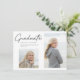 Moderna invitación/invitación de la graduación. Guión sencillo pero elegante de estilo minimalista con 2 colocaciones de fotos sin marco. Diseño completamente versátil para hacer el propio trabajo. Ajustar fácilmente el tamaño y la ubicación de las fotos, o cambiar el estilo de fuente, el color y la ubicación de todos los campos de texto personalizado en modo Personalizar avanzado. Elija el color de fondo de su elección, agregue más fotos y no olvide cambiar el texto de la invitación de invitación de ejemplo o de grupo en la parte posterior.