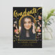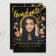 Anuncio Graduado Foto Floral Arco negro y Dorado Script