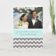 Foto Tarjeta de invitación recién casada con elegante azul celeste azul turquesa claro pastel, gris y blanco casual y chevrons retro zigzags rapes patrón, único y elegante, personalizable con tus nombres, tu propia foto, y fecha boda, la manera perfecta de compartir tus noticias felices con familia y amigos.