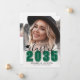 Classic Modern Graduation Announcement. The front features a full-page photo with a white gradient at the bottom that fades seamlessly into the image. Over the gradient, "2026" appears in a bold emerald green or forest green classic school-style font. Just above it, "Class of" is written in elegant black script. To the left of the year is a small, customizable graduation cap icon. Below the year, the graduate's name and school name are prominently displayed. All colors can be customized to match school colors or personal preferences.