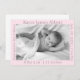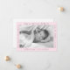 La moderna y dulce invitación para bebés es perfecta para fotos en blanco y negro especialmente y cuenta con un fondo rosa pastel con fuente gris. Cada uno de los cuatro lados tiene el personalizable de incluir un detalle diferente sobre el bebé.