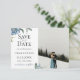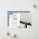 Flores de acuarela azul opaco con follaje botánico de jardín, tarjeta para guardar la fecha de la boda con foto. Diseñada para coincidir con nuestra colección botánica azul opaco.