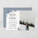 Flores azules polvorosas en acuarela con follaje botánico de jardín, tarjeta para guardar la fecha de la boda con foto. Diseñada para coincidir con nuestra colección botánica azul polvorosa.