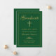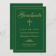 Envíe a su familia y amigos una elegante invitación cristiana de graduación con un fondo verde con una falsa caligrafía de oro y cruzada bordeada por un delgado marco dorado. Personaliza con tus detalles de graduación. Diseñado por Susan Coffey.