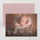 Presenta a tu nuevo bebé con este dulce y simple anuncio clásico de nacimiento con foto. La bienvenida es un elegante y moderno guión y hay espacio para un nombre grande, estadísticas y nombres de los padres también. La parte trasera es un rosa suave moderno salpicado de blanco. ¡Perfecto para compartir fotos de recién nacidos con amigos y familiares!
