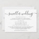Si las circunstancias requieren que reduzca su boda, puede informar a su familia y amigos que no pueden asistir que su boda será a menor escala, más íntima, con este anuncio de boda más pequeño, moderno y minimalista, pero elegante, en blanco y negro. "Boda más pequeña" está escrito en una elegante letra con florituras y puede personalizar fácilmente el mensaje de reducción de la boda con más detalle, incluyendo cualquier evento de boda virtual y celebraciones futuras.