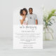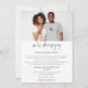 Para ocasiones en que una ceremonia de boda con distanciamiento social es necesaria y deseas informar a tus invitados que estás reduciendo y los invitas a la transmisión en vivo, este diseño contemporáneo moderno tiene tu foto en la parte superior y un guión de estilo de escritura a mano moderna con Estamos reduciendo debajo. El resto del texto puedes personalizarlo fácilmente con tus detalles.
