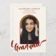 Celebra la graduación de la escuela secundaria, universidad o universidad de tu hija con esta elegante tarjeta de invitación de escritura de terracota naranja quemada. Diseñada para captar el espíritu de la ocasión, esta tarjeta presenta una elegante caligrafía naranja quemada en terracota y un cálido arco de terracota sobre un fondo beige, un encanto y una sofisticación exuberantes. La parte frontal muestra el nombre de su hija y los detalles de su graduación en la tipografía de escritura naranja quemada sobre un fondo beige suave, mientras que la parte posterior proporciona espacio para información adicional en caligrafía moderna. Con una plantilla de fotos fácil de usar, puedes personalizar la tarjeta con una preciada foto de tu graduado, haciéndola única suya. Diseñada por la artista Catherine Sweetman, esta tarjeta original es la manera perfecta de conmemorar su logro y compartir la alegre ocasión con amigos y familiares.