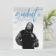 Tarjeta de invitación de graduación moderna con la foto favorita de tu graduado en la parte delantera con "Graduado" en un guión manuscrito azul. Personalice el frente de la invitación agregando el nombre del graduado, el nombre de la escuela y el año de graduación. La invitación de graduación de moda se revierte para mostrar otras 3 fotos con espacio para texto como planes futuros, detalles de graduación, detalles de fiestas, etc. La invitación de 4 foto graduadas es perfecta tanto para graduados de secundaria como universitarios.