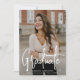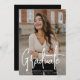 Moderna invitación de graduación con tu foto vertical en la parte delantera con "Graduado" mostrado en una sobreimpresión de escritura manuscrita blanca. Personalice la parte delantera de la invitación de graduación fotográfica con el nombre del graduado, el nombre de la escuela y el año de graduación. La simple invitación de graduación se revierte para mostrar una foto adicional con espacio proporcionado para incluir los planes futuros del graduado, detalles de graduación, etc. ¡La invitación de 2 fotos de graduación es perfecta tanto para graduados de secundaria como universitarios!