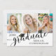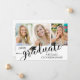 Moderna invitación de graduación de collage de fotos con 3 fotos en la parte delantera y 1 en la parte posterior con tipografía de escritura caligráfica para el título GRADUATE acentuado con una gorra de graduación o un mortero y personalizado con el nombre de tu graduado y el año de clase en negro sobre un fondo blanco editable - seleccione un color diferente o elija entre una variedad de diseños gráficos estilizados. La parte de atrás incluye detalles sobre tu graduado. ASISTENCIA: Para obtener ayuda con la modificación/personalización del diseño, cambios de color, transferencia del diseño a otro producto o si desea coordinar elementos, póngase en contacto con el diseñador ANTES DE PEDIRLO a través de Zazzle Chat o makeitaboutyoustore@gmail.com.