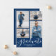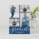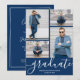 Añade tus cuatro fotos favoritas al frente de estas invitaciones a la fiesta de graduación con letras de grado y clase de moda en un fondo de color azul marino de la escuela. Haga clic en el enlace adicional del Personalizar para cambiar a cualquier color utilizando nuestras herramientas de diseño. MÁS diseños y colores hechos en nuestra tienda incluyendo invitaciones, guardar las tarjetas de fecha y postales.