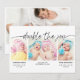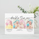 La tarjeta de anuncio de nacimiento presenta un guión escrito a mano "doble la alegría" 3 fotos al frente, 1 foto en la parte posterior con nombres, estadísticas de nacimiento y mensaje personalizable.