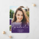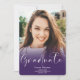Un graduado de escritura púrpura moderno con 4 fotos de invitación de graduación. Añade tu mensaje al fondo.