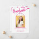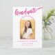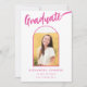 Celebra la graduación de la secundaria, universidad o universidad de tu hija con esta lúdica y vibrante tarjeta de invitación de arco de fotos en negro y rosa caliente. Esta tarjeta, rebosante de estilo, presenta una caligrafía caprichosa de escritura rosada caliente contra un fondo negro audaz, coronado por un divertido y elegante arco rosa. La parte delantera muestra la palabra "Graduada" en un impresionante guión rosa caliente, perfectamente complementada con su nombre y detalles de graduación en tipografía rosa moderna. La parte posterior ofrece espacio para información adicional en la coordinación de texto rosado en caliente. Con una plantilla de fotos fácil de usar, puedes personalizar esta tarjeta con una preciada foto de tu graduado, haciéndola única suya. Diseñada por la artista Catherine Sweetman, esta carta única es la manera perfecta de marcar su logro y compartir la alegría con amigos y familiares.