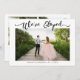 Elegante y moderna invitación boda de dos caras con una escritura con letras a mano que dice "Hemos Eloped" encima de tu foto. Esta tarjeta tiene 3 fotos en total.