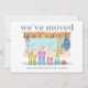 Una bonita tarjeta de colores para anunciar tu reciente mudanza a la familia y amigos. El diseño es sencillo y cuenta con un ilustracion acuático en el que las botas familiares están cuidadosamente colocadas bajo un perchero. Personaliza con tu apellido y nueva dirección.