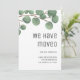 Simple y hermosa tarjeta de invitación botánica para enviar a tus amigos y familia para notificar tu nueva dirección. También puede utilizarse como tarjeta para el cambio de hogar para sus nuevos vecinos. Ilustrado y diseñado por Patricia Álvarez.