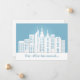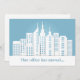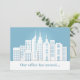 Nuestras oficinas se han mudado a un nuevo edificio, por favor actualice su libreta de direcciones. Personalice la parte trasera de esta tarjeta de anuncio de mudanza profesional con la información personalizada de su empresa para todos sus contactos comerciales y clientes. Un hermoso dibujo de la silueta de un edificio moderno de la ciudad azul para los anuncios de cambio de dirección de su empresa.