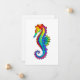 Arco de arcoiris, caballito de mar poligonal sobre fondo blanco. Tatuaje brillante.