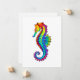 Arco de arcoiris, caballito de mar poligonal sobre fondo blanco. Tatuaje brillante.