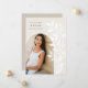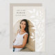 La moda y la moderna invitación de graduación presentan una sola foto vertical/retrato orientada en un diseño arqueado, con viñas trepadoras de hojas botánicas blancas a lo largo del lado derecho. Personalice con el nombre de su graduado, el año de clase y la escuela y añada un mensaje personal al dorso, junto con una foto adicional.