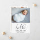 Esta elegante tarjeta de presentación de fotos de dos caras muestra cuatro (4) fotos (frontal y posterior) de tu bebé recién nacida, texto personalizado que puede ser personalizado, y un guión de acuarela con letras a mano que dice "hola". Personalizar este producto agregando el nombre del bebé recién nacido, las imágenes, el registro de nacimiento y los nombres de los padres.