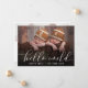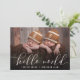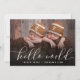 Duplica la alegría en caligrafía elegante "hola mundo". En el otro lado agrega tus dos fotos favoritas con estadísticas de nacimiento. Tarjeta postal disponible en este diseño. Ver esta colección.