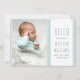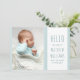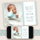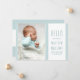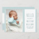 Hola tarjeta de anuncio de la foto de su recién nacido. Diseño sencillo y elegante con una tipografía de fuente delgada y una suave paleta de colores de dos tonos azul y blanco. La plantilla de fotos está configurada para que añadas tu imagen favorita y también puedes añadir tu propio mensaje de anuncio de nacimiento de personalizado con estadísticas de nacimiento en la parte posterior. La frase en el frente dice "¡hola mi nombre es [nombre del bebé] y no puedo esperar a conocerte!". Por favor, busca en mi tienda más diseños.
