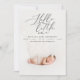 Hola pequeño anuncio moderno de nacimiento de una foto. Texto de guión elegante, foto impresa moderna