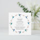 Esta hermosa invitación a bautizar o bautizar presenta una corona acuarela de colibríes mexicanos violetas y de zafiro y ramas botánicas sobre un fondo blanco. El tamaño del tipo de letra y el estilo del tipo de letra pueden cambiarse haciendo clic en "Editar usando la herramienta de diseño". Todas las imágenes de colibríes son tomadas de las acuarelas originales por C. Dobbins.