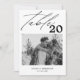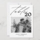 Una forma diferente de mostrar los números de la tabla boda. Diseñado para coincidir con la Colección "Vivian". Esta plantilla incluye 1 imagen que podría ser cuando eras niño o como pareja, número de tabla en. moderna tipografía de caligrafía, nombres de pareja y fecha de boda.