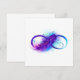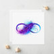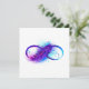 Símbolo de infinito con una hermosa pluma pintada en colores brillantes púrpura y azul sobre fondo blanco.