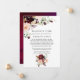 Anuncio de invitado de boda boho reducido con vino tinto burdeos y flores rosadas con acentos de rosa pálido. En estos tiempos inciertos, puede suceder que tenga que celebrar una boda más pequeña de lo planeado originalmente. Esta tarjeta de anuncio eliminará la incomodidad y le quitará un peso de encima. Además, puede ofrecer la opción de unirse a usted para una ceremonia virtual.