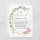 Anuncio de lista de invitados de boda reducida con eucalipto geométrico de moda y rosas rosadas con marco geométrico dorado. En estos tiempos inciertos, puede suceder que tenga que celebrar una boda más pequeña de lo planeado originalmente. Esta tarjeta de anuncio eliminará la incomodidad y le quitará un peso de encima. Además, puede ofrecer la opción de unirse a usted para una ceremonia virtual.