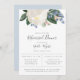 Arreglo floral de acuarela en tonos de blanco, rosa, azul y verde, invitación para la cena de ensayo. Diseño de tipografía gris chic y moderno. Parte posterior de la tarjeta con color azul claro sólido.