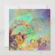Caprichosos, elegantes, giros artísticos y polvos de hadas de fantasía en colores azul turquesa, azul aqua, verde, amarillo y destellos dorados. Detalle de pintura triptica de técnica mixta con láminas de oro y plata, 2009. El tema se refiere a arquetipos y simbolismo alquímico medieval. Esta es una visión destilada de lo imaginario colectivo occidental y oriental que busca imágenes remotas en lo profundo del misterioso jardín de las sombras perdidas.