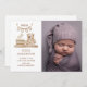 Agradable anuncio de natalidad dulce con el boho acuarela de oso Teddy juguete en suaves tonos beige pastel.
