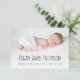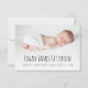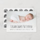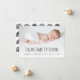 Anuncio moderno de nacimiento de boho con una foto horizontal personalizado. Añada el nombre de su bebé con letras negras y grabadas a mano, junto con la fecha de nacimiento, hora, peso y longitud a continuación. Un filtro de degradado ilumina la parte inferior de la foto para ayudar a que el texto aparezca. Reemplace fácilmente la imagen de ejemplo con su foto favorita de su recién nacido. La parte trasera de la tarjeta presenta un lindo patrón de arcos blancos y negros dibujados a mano sobre un fondo blanco. Ideal para niños y chicas.