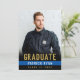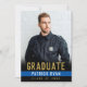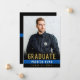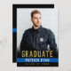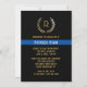 Anuncie su graduación de la academia de policía con estilo con esta simple pero elegante invitación de graduación de la delgada línea azul e invitación fiesta combinada. Esta plantilla de diseño presenta una foto en la parte delantera con las palabras "Graduado" en tipografía de oro, tu nombre en blanco en una delgada franja azul y clase con el año siguiente para personalizar. La parte posterior de la tarjeta tiene más detalles de tu graduación con invitación a la fiesta acentuada por una falsa corona de laurel de oro con tu monograma inicial en el centro. Gran elección para los graduados de la academia de policía y de la policía. Diseñado por la artista ©Susan Coffey.