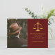 Legal professional graduation with gold scales of justice. Photo template via Pixabay licensed under CC0 and must be replaced with your own photo.